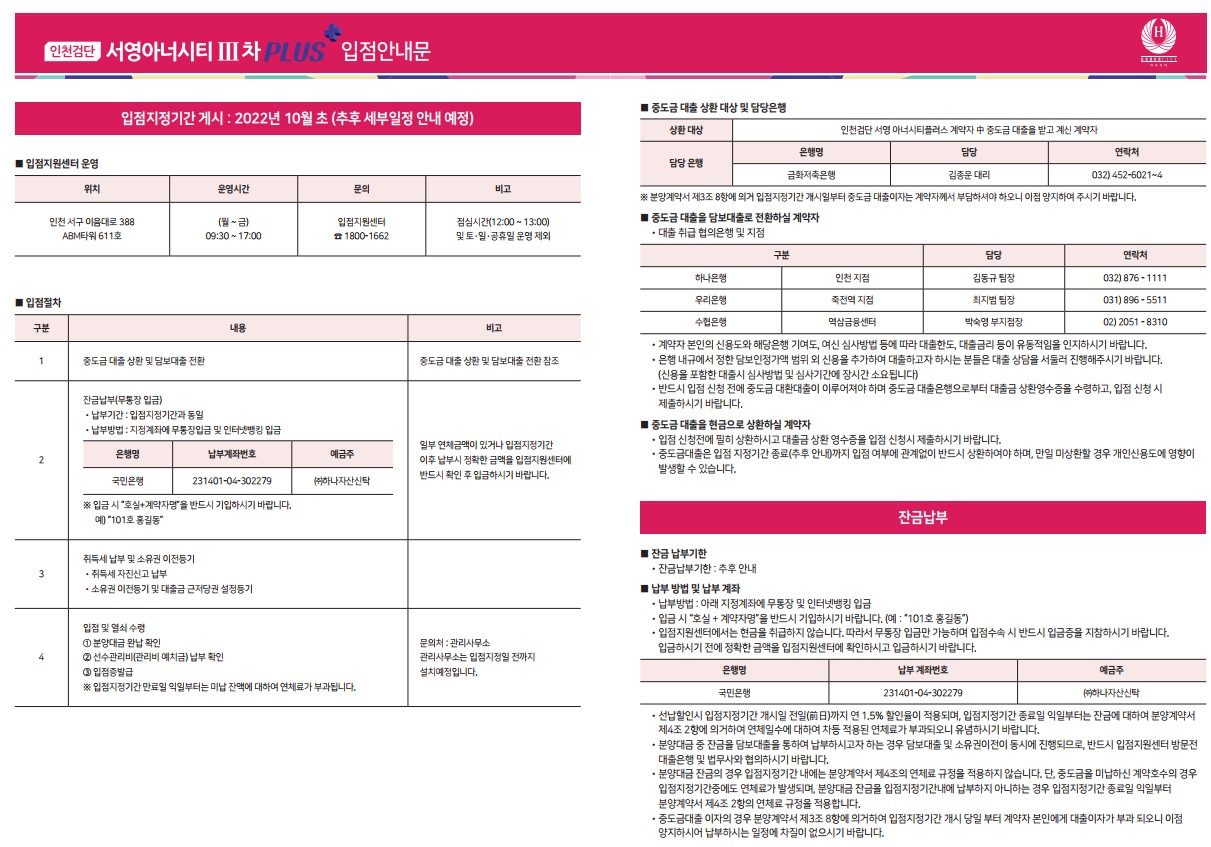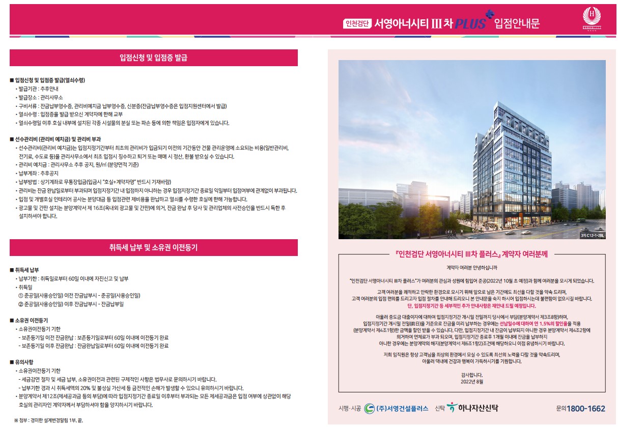 [인천검단3차 아너시티플러스] 입점안내문 1차